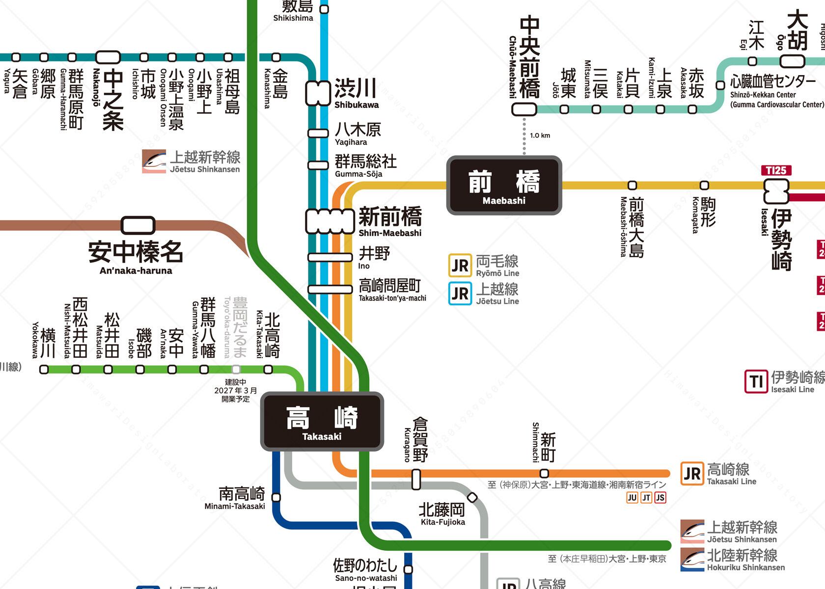 群馬県内のすべての鉄道路線と駅を網羅した、便利なデジタル路線図です。県内の鉄道を全て網羅しており、大変便利です。