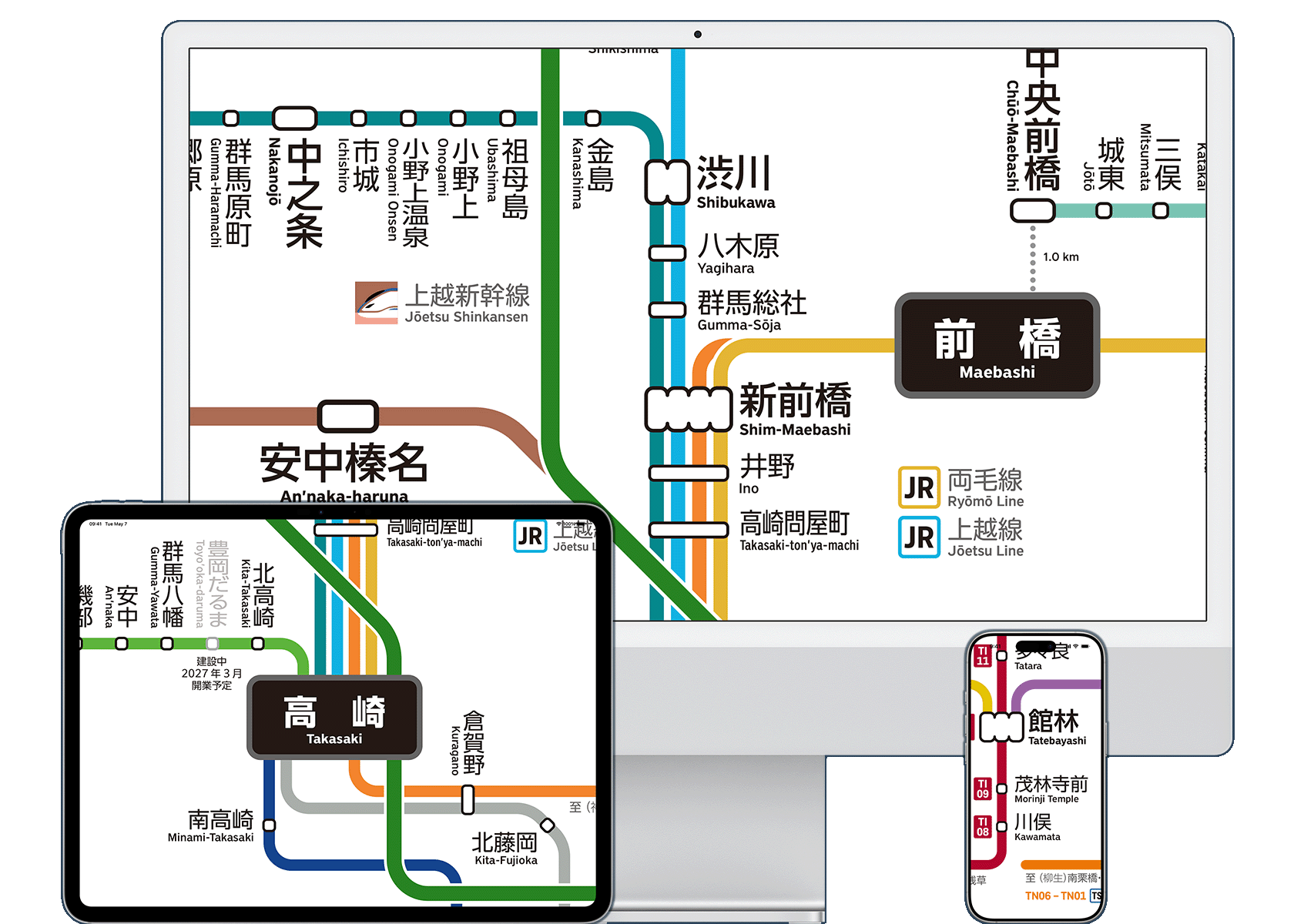 群馬県内のすべての鉄道路線と駅を網羅した、便利なデジタル路線図です。県内の鉄道を全て網羅しており、大変便利です。