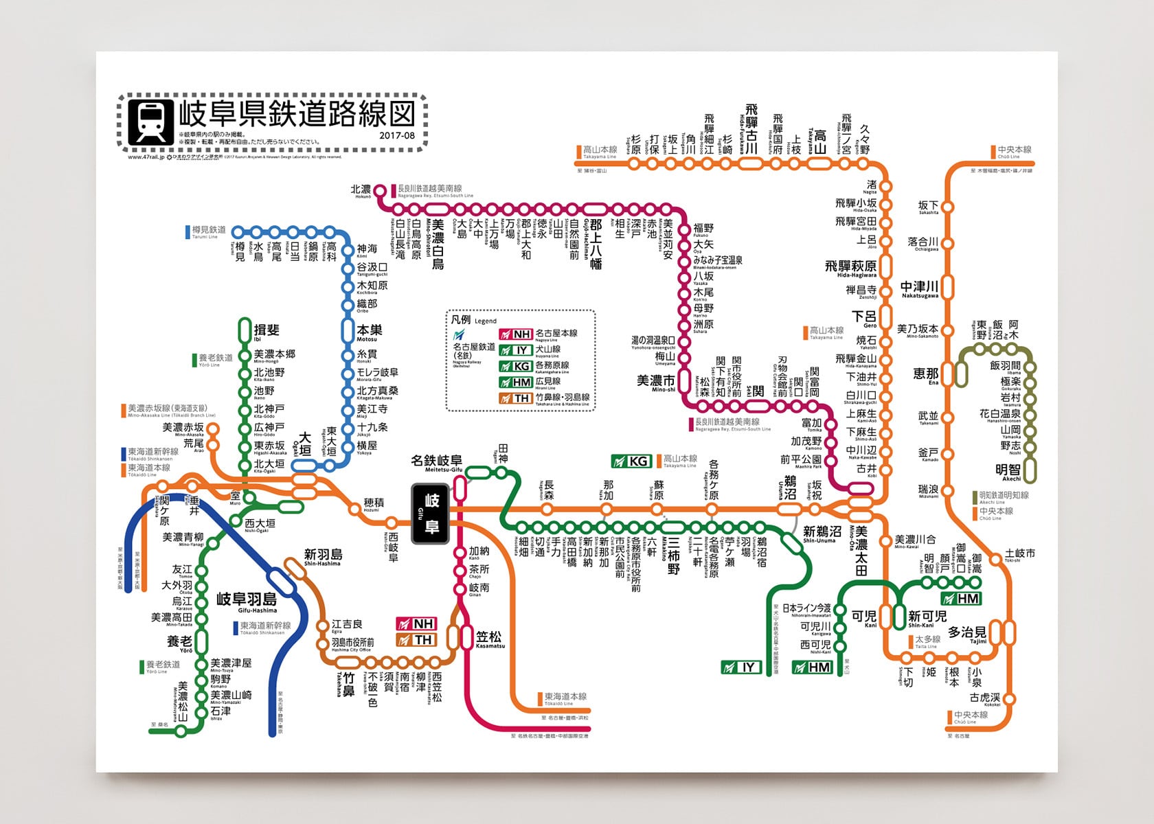 岐阜県内のすべての鉄道路線と駅を網羅した、便利な路線図のポスターです。