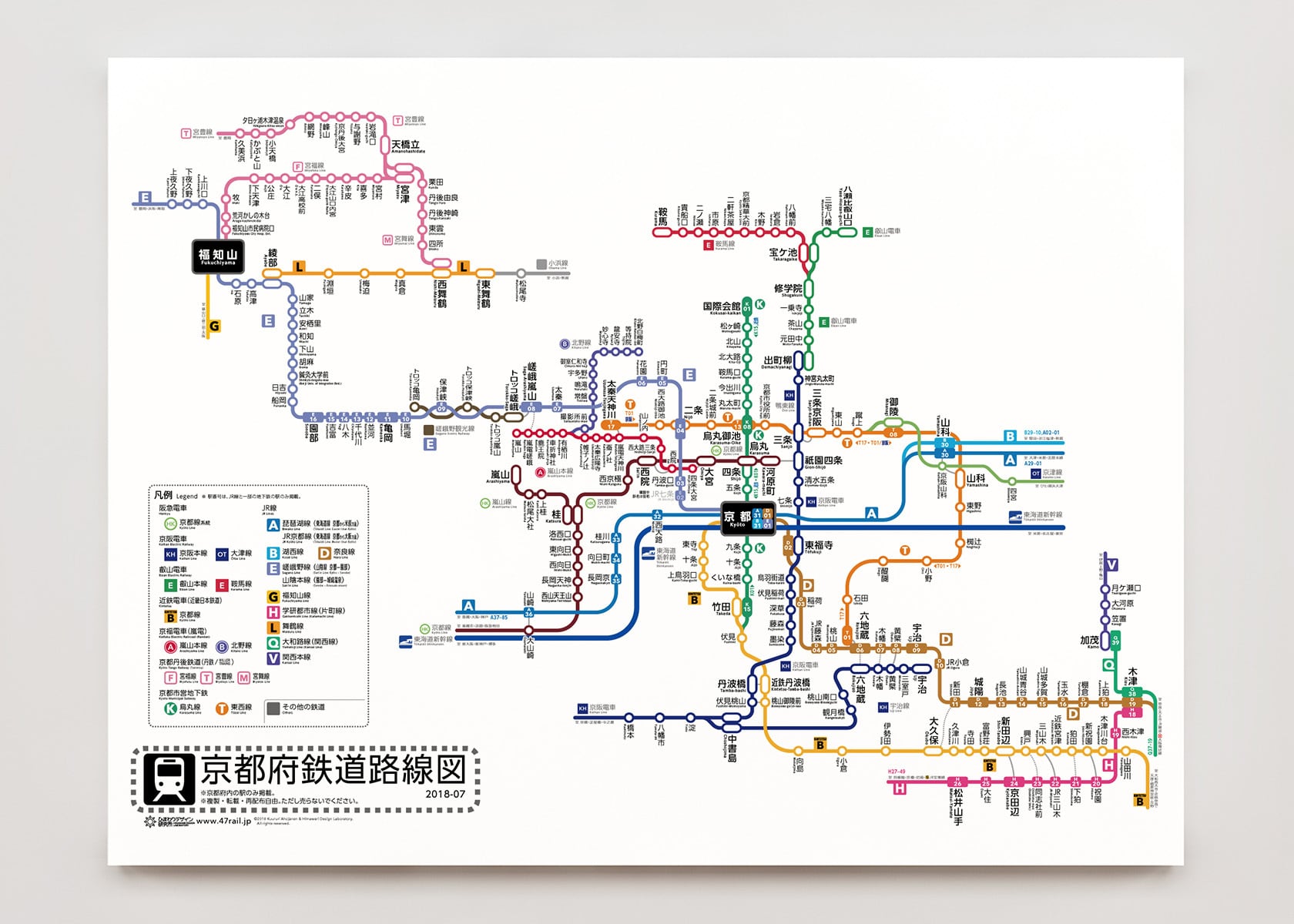 京都府内のすべての鉄道路線と駅を網羅した、便利な路線図のポスターです。