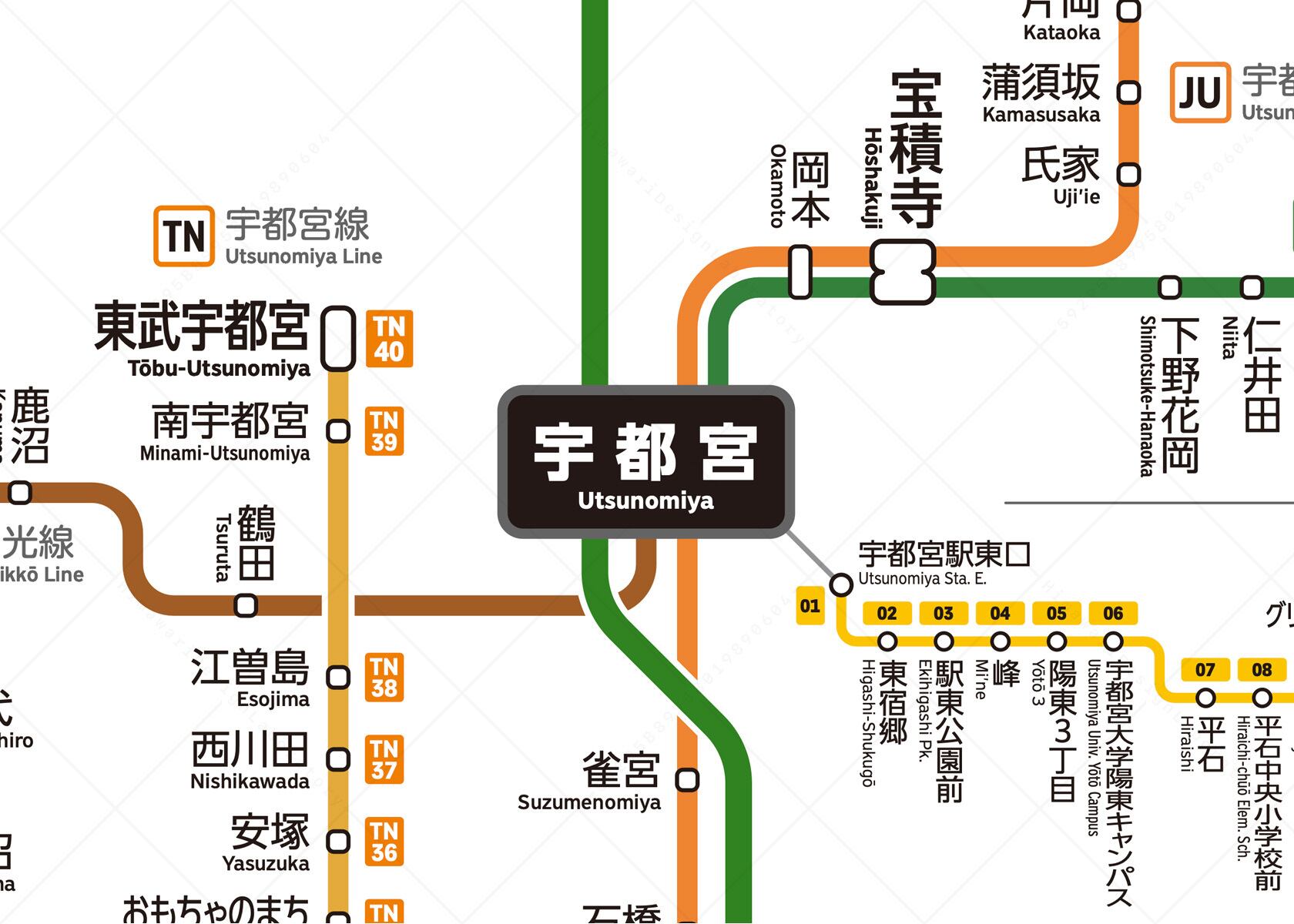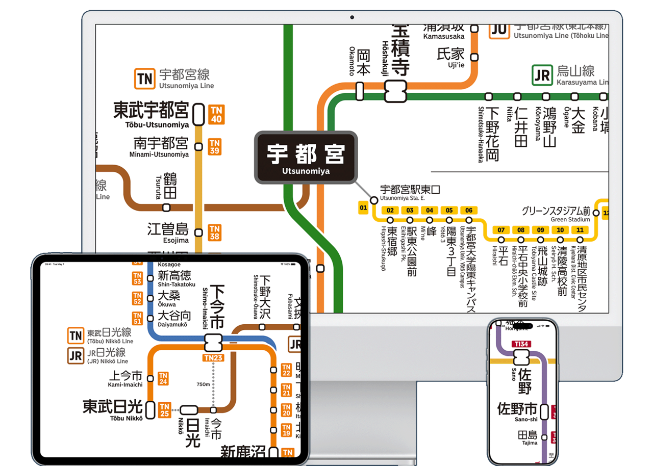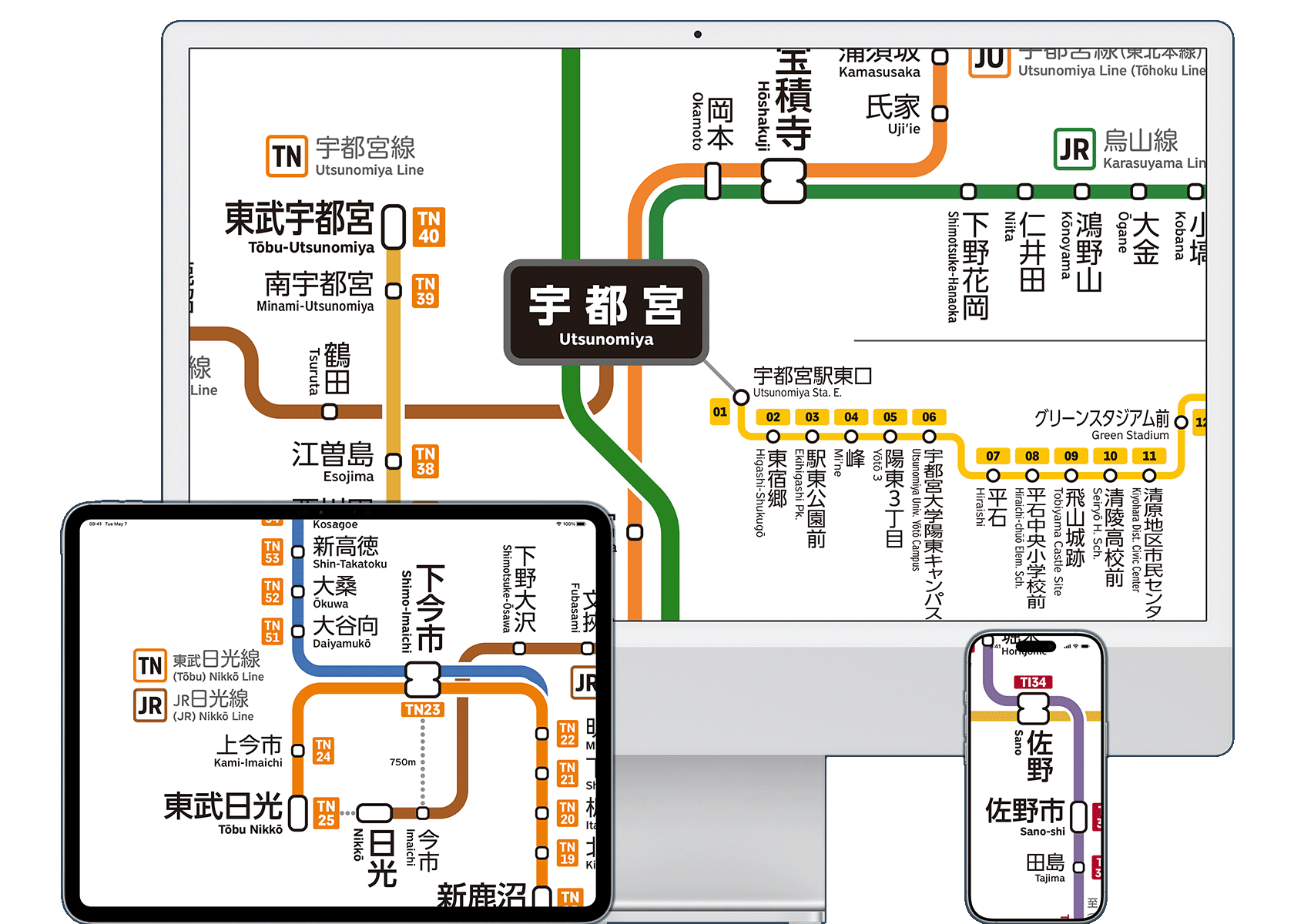 栃木県内のすべての鉄道路線と駅を網羅した、便利なデジタル路線図です。県内全ての鉄道を網羅しており、大変便利です。