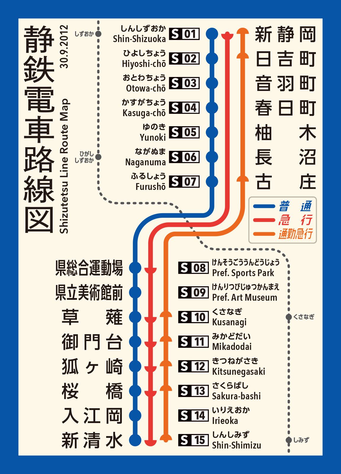 静岡鉄道の路線図カードです。全ての列車種別を網羅しています。両面にPP加工を施してあり、耐久性があります。
