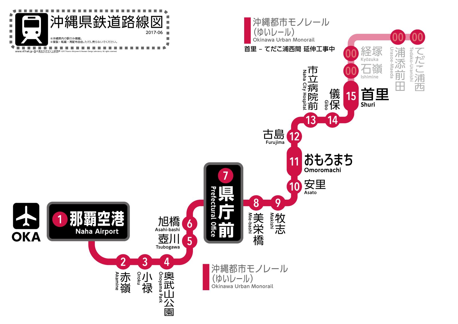 ゆい…沖縄県内のすべての鉄道路線と駅を網羅した、便利な路線図のポスターです。